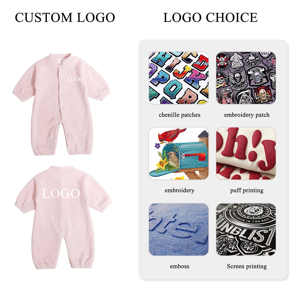 Design Your Own Brand Autumn Winter Children Long Sleeves Warm Unisex Teddy Velvet Newborn Baby Rompers